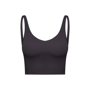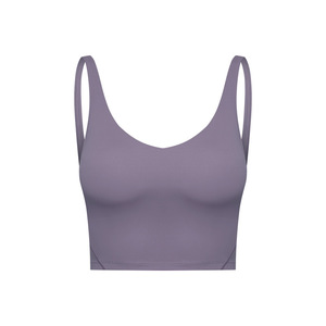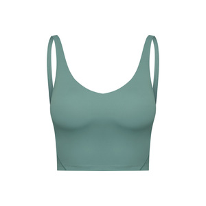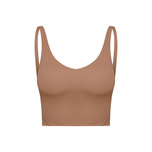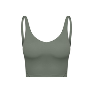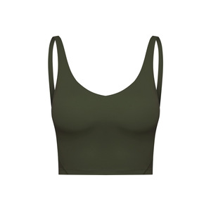 夏季新款跨境纯色带胸垫裸感美背跑步健身运动瑜伽背心上衣女2054