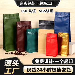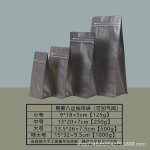 八边封咖啡袋食品级专用铝箔包装袋可印刷免版费通用咖啡豆包装袋