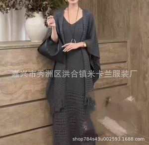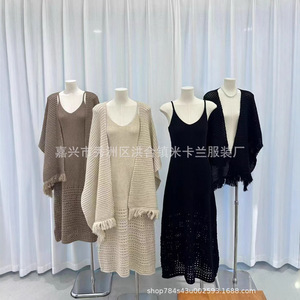 超好看精致流苏两件套2025新款时尚百搭气质针织开衫冷淡系连衣裙