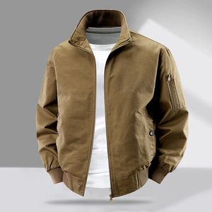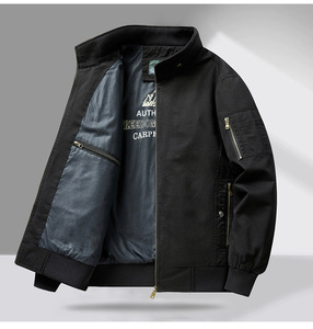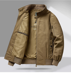 2025春秋新款工装纯棉夹克宽松大码美式飞行员翻领复古休闲外套男
