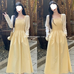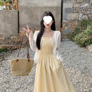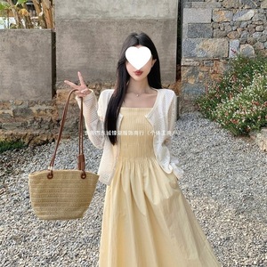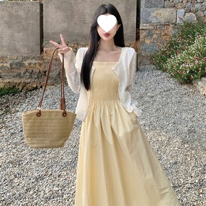 大码韩系法式温柔镂空吊带连衣裙夏季开衫套装防晒时尚两件套罩衫