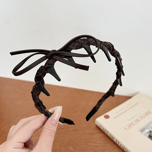 "格子蝴蝶结复古发箍女高级感轻奢秋冬新款洗脸高颅顶头箍发饰头
