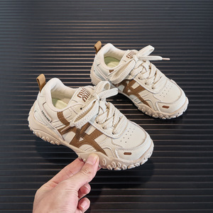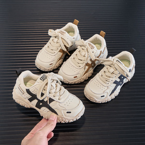 儿童时尚皮面德训鞋2025秋季新款男女童春秋单鞋中大童休闲跑步鞋