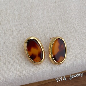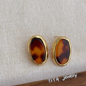复古豹纹树脂椭圆耳环女ins欧美小众轻奢气质高级感网红耳钉耳饰
