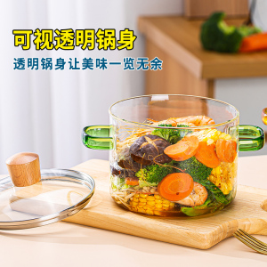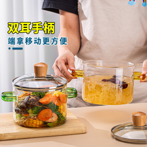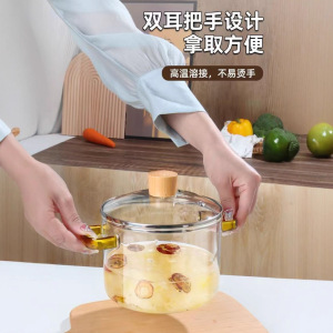 跨境高硼硅玻璃汤锅透明玻璃炖锅双耳养生锅泡面锅耐高温玻璃锅