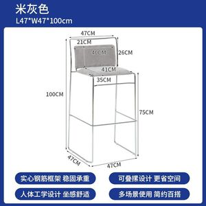 中古风简约吧台椅家用高脚餐椅设计师极简法式复古岛台靠背吧凳子