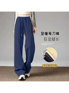 藏青色弯刀裤女春秋季高腰垂感休闲镰刀新款窄版香蕉阔腿运动卫裤