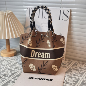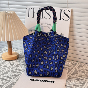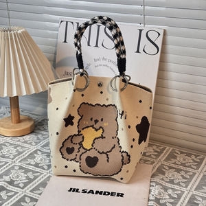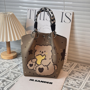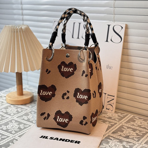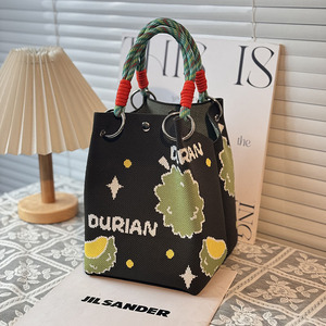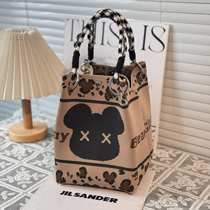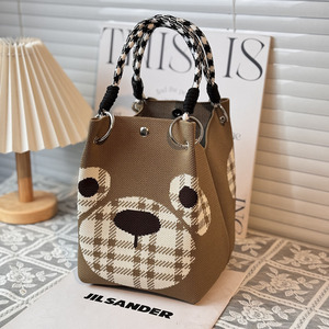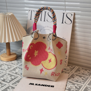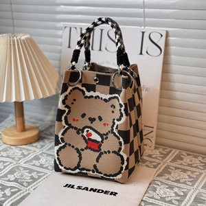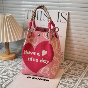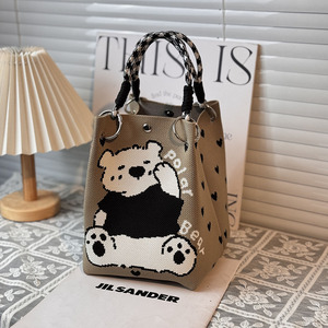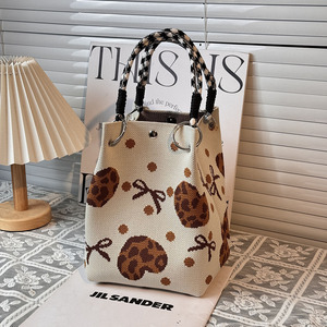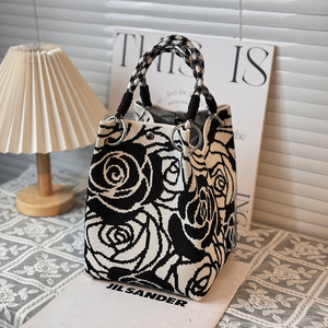 教师节礼物小众设计针织手提包时尚白塔逛街拍照手拎包包水桶方包