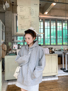 CallmeEar//【重工猫咪刺绣480重卫衣】连帽拉链卫衣外套女