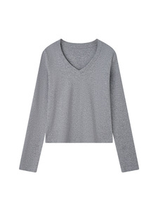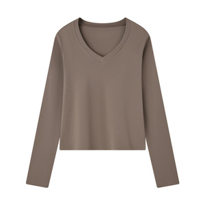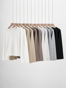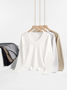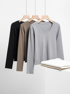 秋季V领打底衫女2025新款正肩修身显瘦长袖t恤女内搭韩系休闲上衣