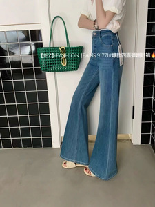 IEZ91771四面弹不贴腿直筒喇叭裤女2025秋高腰显瘦宽松牛仔微喇裤