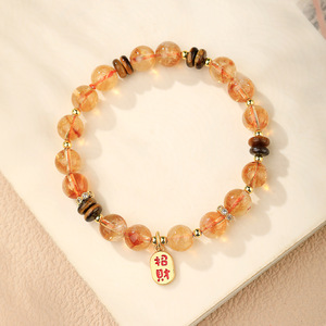 天然黄塔晶手链黄虎眼石盘珠手串新中式水晶手串七夕送女朋友礼物