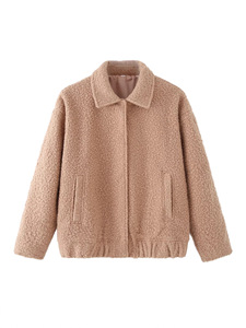 跨境外贸女装秋新款经典百搭翻领长袖纯色羊羔毛呢夹克外套女