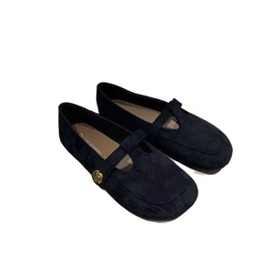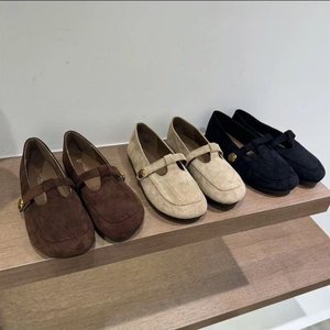 韩版复古绒面厚底小皮鞋鞋女内增高百搭一字扣带一脚蹬单鞋