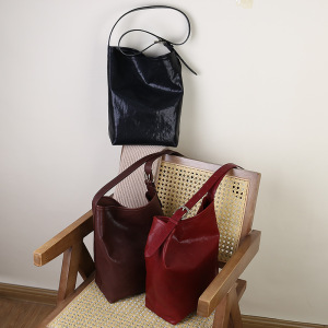真皮高级感托特水桶包植鞣牛皮复古单肩腋下包大容量通勤子母包女