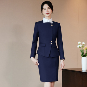 蓝色职业西装套装女酒店前台接待KTV经理工装美容院珠宝店工作服