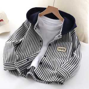 秋季新款男童外套春秋款条纹衬衫开衫韩版连帽外套卫衣中大童外套