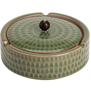 陶瓷烟缸带盖创意轻奢防飞灰家用客厅办公室复古大号烟缸LOGO批发