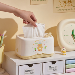 高颜值桌面小鸭抽纸盒弹簧升降纸巾收纳盒客厅茶几方型卡通纸巾盒