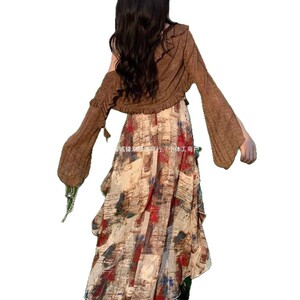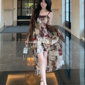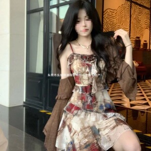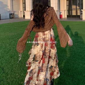花影画报 春秋新款法式复古气质设计感花边连衣裙长袖开衫两件套