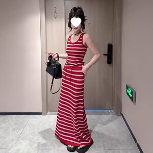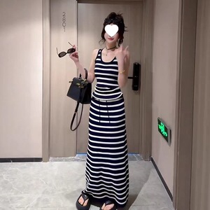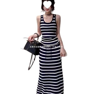 条纹针织无袖连衣裙女2025夏季新款气质显瘦裙子百搭两件套