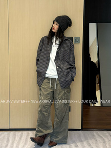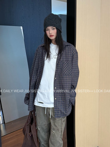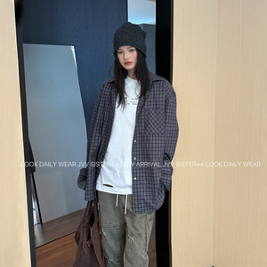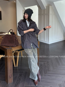 JVV十三行2025秋季新款时尚复古格子宽松衬衫百搭休闲衬衣女71266
