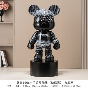 总高100cm手绘炫酷熊(动感黑)-含底座