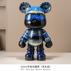 总高100cm手绘炫酷熊(深水蓝)-含底座