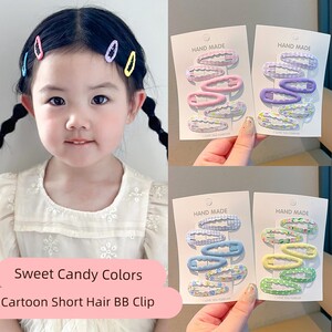 儿童侧刘海夹2025新风格女孩破碎的头发Bb夹糖果色波浪发夹可爱的