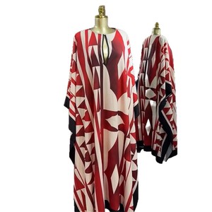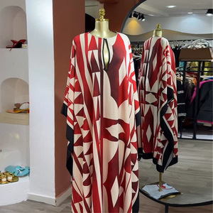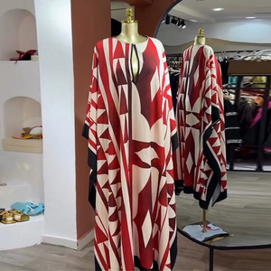 欧美女装2025秋季新款甜美清新印花圆领蝙蝠袖宽松直筒连衣裙长裙