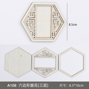 【六边形对角窗花】三层木框