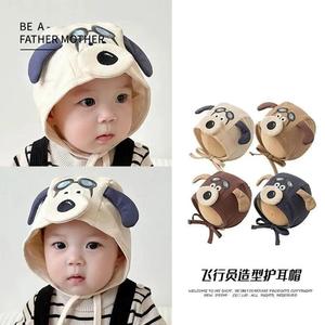 狗狗飞行员婴儿帽子春秋款可爱男女宝宝胎帽护耳新生婴幼儿包头帽