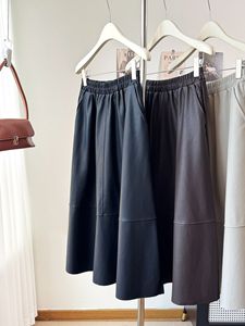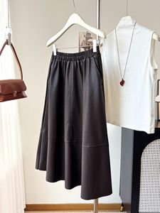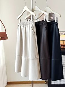 皮裙半身裙秋冬花苞立体设计百搭长裙气质a字伞裙中长高腰裙子