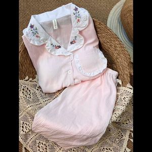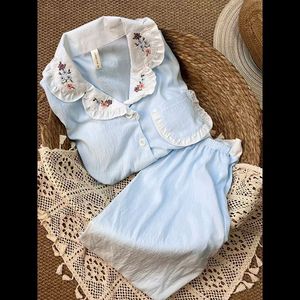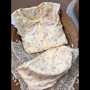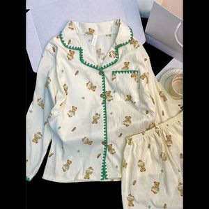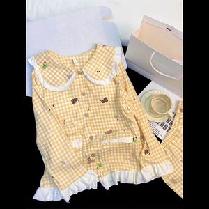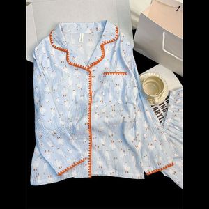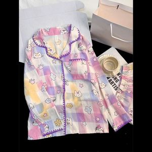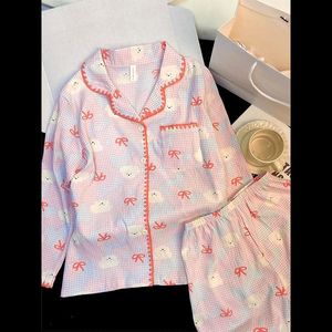 带胸垫睡衣女春秋云朵棉开衫长袖长裤学生卡通可爱家居服两件套薄