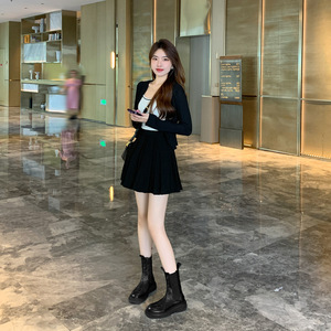 牛皮版~复古厚底英伦风切尔西靴女短靴真皮褶皱烟筒靴中筒马丁靴