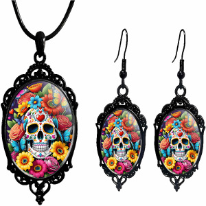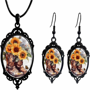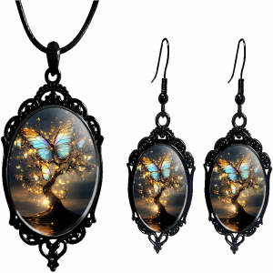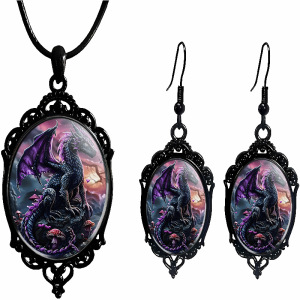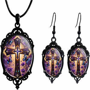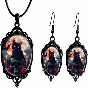 跨境 新品亚马逊 哥特式乌鸦十字架玻璃吊坠配饰厂家直销项链耳环