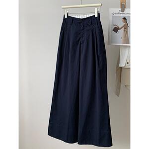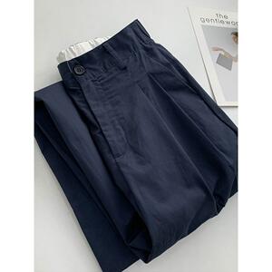 文艺风秋季女装藏青色休闲裤女秋韩版百搭宽松高腰阔腿裤长裤子女