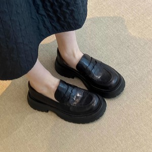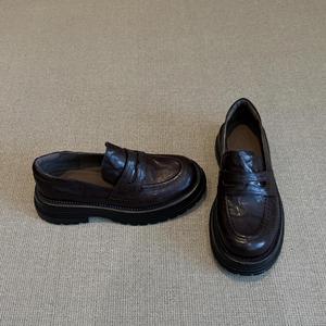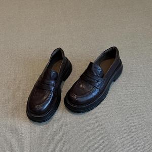 羊皮版!2025新款法式复古小众时尚气质圆头粗跟一脚蹬乐福鞋单鞋
