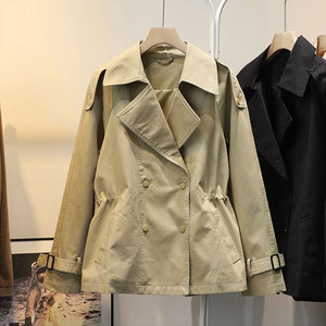 短款风衣外套女双排扣2025春秋装新款抽绳收腰小个子百搭上衣
