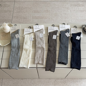 春秋新款日系长筒靴袜美拉德色双针暗纹竖条及膝小腿袜ins潮袜批