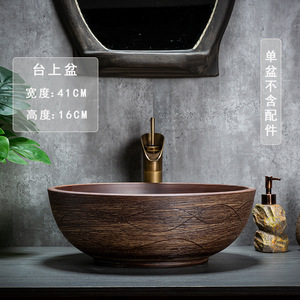厂家批发台上洗手盆家用复古陶瓷洗脸盆防溅水艺术盆阳台单盆面