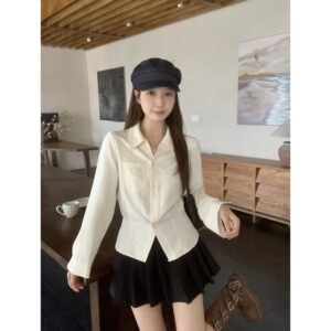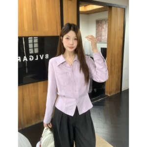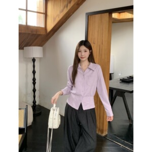 实拍2025秋季胖mm大码女韩版翻领收腰衬衫气质显瘦百搭衬衣80320
