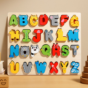 幼儿童26个英文字母认知积木数字立体拼图早教启蒙配对板益智玩具