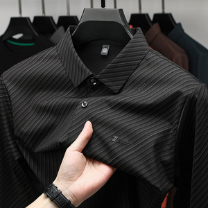 跨境轻奢印花长袖衬衫男士新款斜条纹休闲免烫中年商务衬衣男装