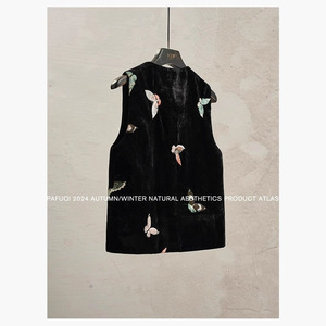 新中式马甲黑色丝绒圆领蝴蝶刺绣上衣外穿背心轻国风女装2025新款