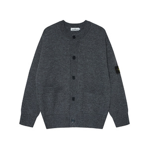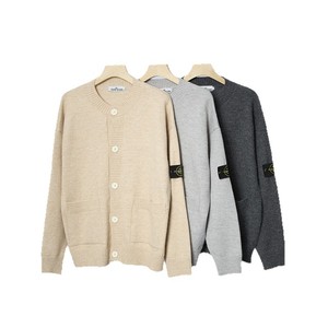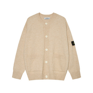跨境Stone石头岛男女秋冬宽松臂章纽扣针织开衫上衣北极绒毛衣
