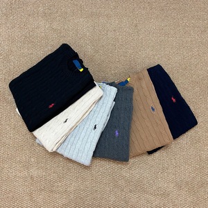 高品质经典拉夫战马刺绣男款棉线麻花圆领长袖套头针织毛衣针织衫