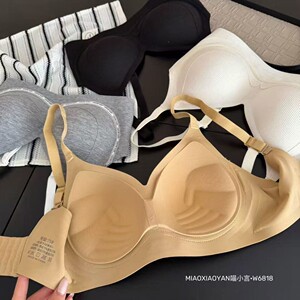 6818暖肌聚拢提手掌固定杯机洗内衣女条纹磨毛上托防下垂提拉文胸