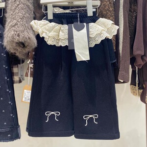 女童裤子2025秋冬新款洋气儿童蕾丝花边拼接灯芯绒休闲裤直筒裤潮
