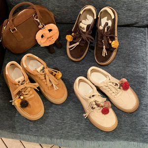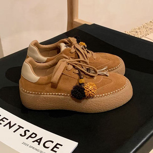 牛皮版葡萄同款松果流苏圆头厚底休闲板鞋系带德训鞋女运动鞋子